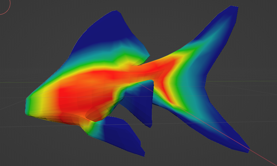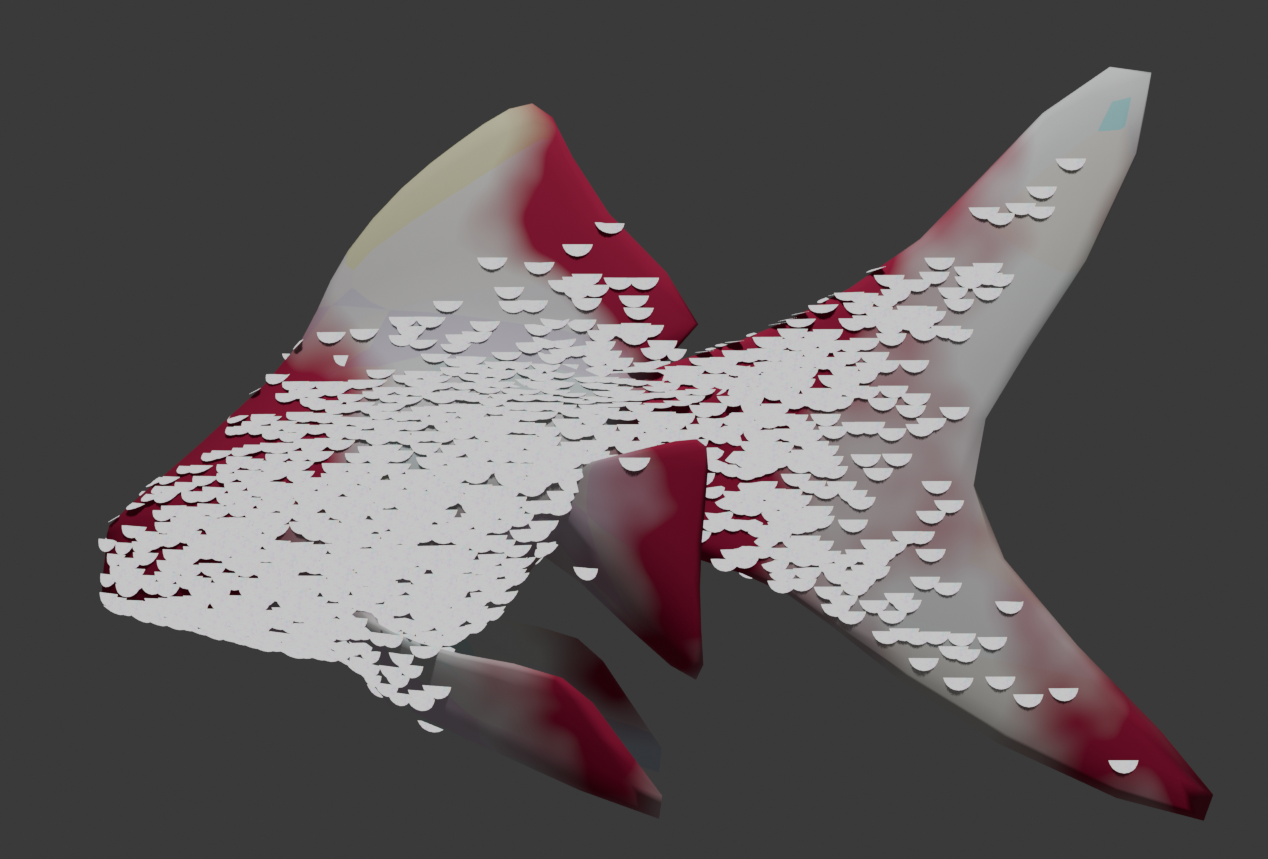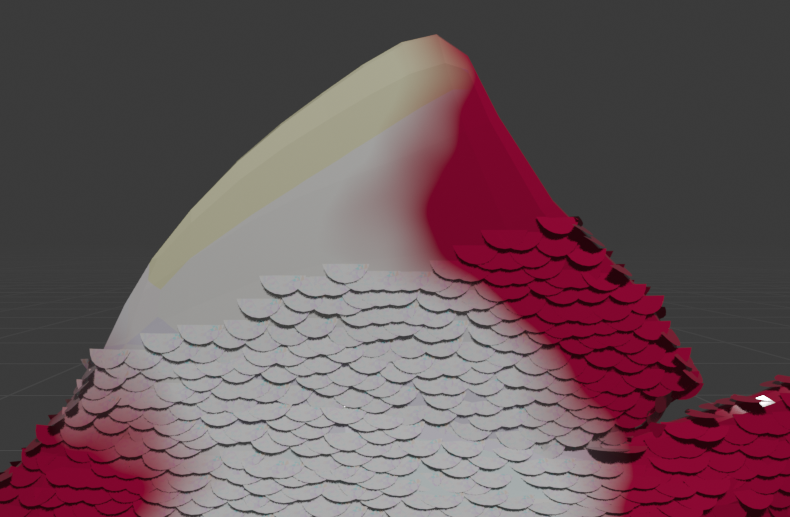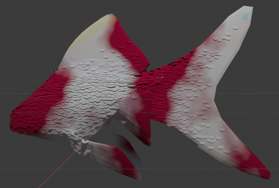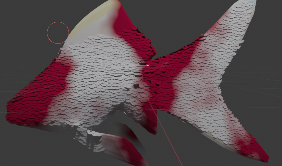 で、ウロコってヒレや口元にはないじゃないですか。だからそこは除外したくてウェイトペイントを塗ってみました。