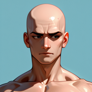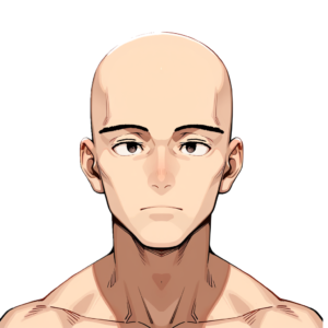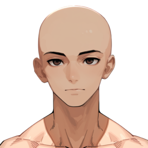 ところが大きな問題に直面しました。なぜか髪がないイラストって、生成すると全員厳しい顔をしているイラストになっちゃうんですよね…。