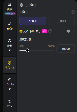 生成済みのモデルをリメッシュするにはリメッシュタブに移ります。