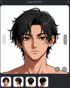 スーツの部分は後で体と合成するときに邪魔です。そのため、前回の記事で作成した裸の画像の頭部分だけで生成してみます。