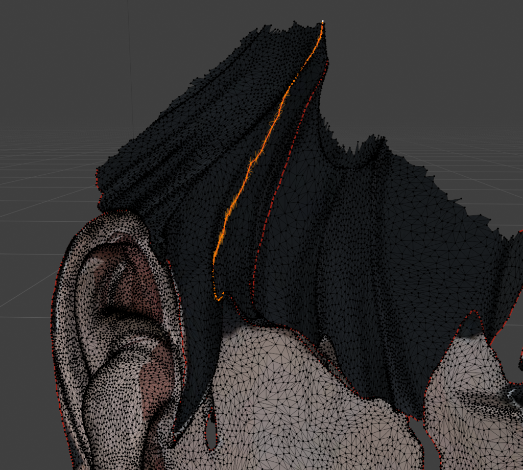 インポートしたら、顔面のリトポロジーに邪魔な顔以外の髪・服の部分を編集モードで分離します。