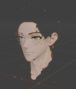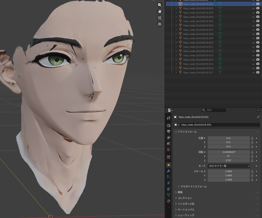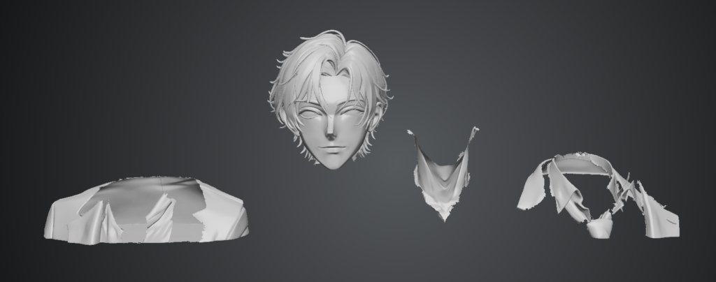 最終結果は、多少ゴミが残っていても問題ありません。眉毛部分のメッシュもなくなってますが位置が分かるため問題ないです。