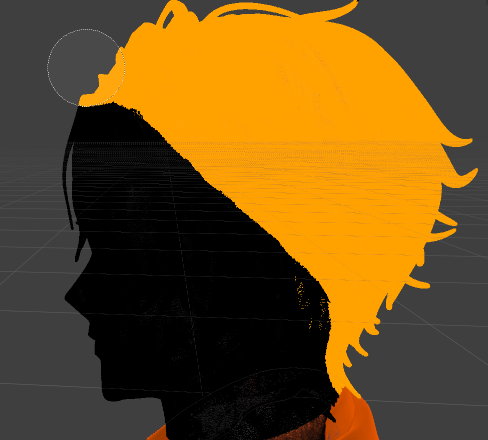 まずは大雑把に頭の部分をワイヤーフレーム表示+ショートカットCのサークル選択で選択し、分離。