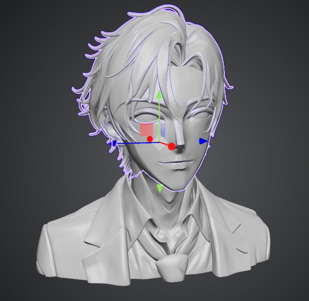 手動でリトポロジーをするにあたってはリトポロジーは顔の部分に新たなメッシュを上から張って行う作業のため、顔以外の髪や服などのパーツを一旦分けて非表示にする必要があります。