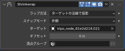 ローポリメッシュのほうにシュリンクラップモディファイアをつけます。