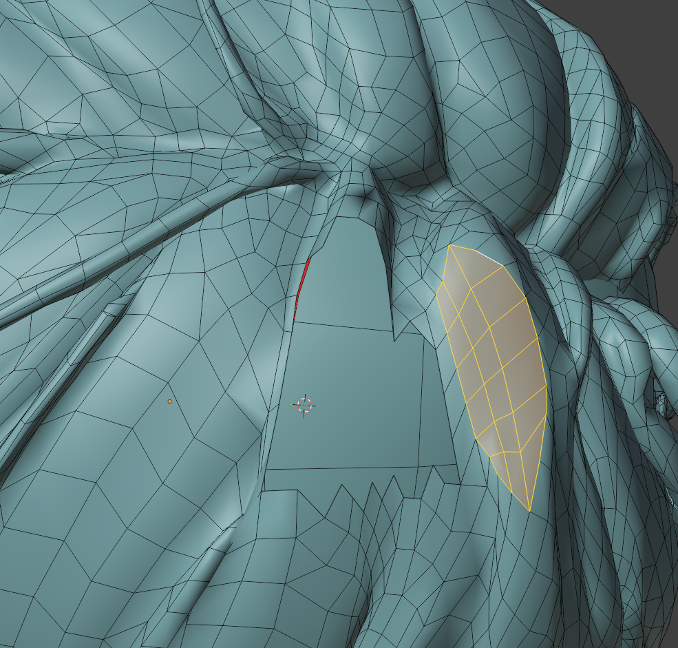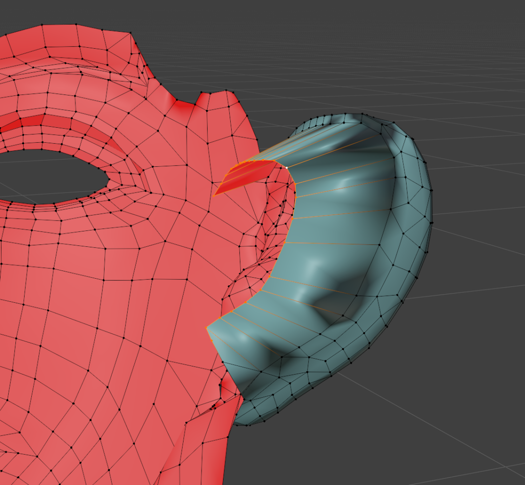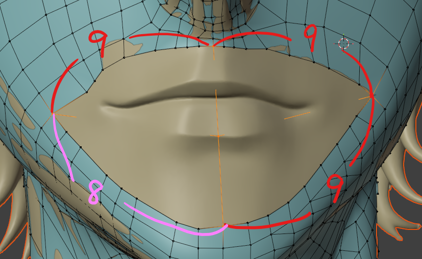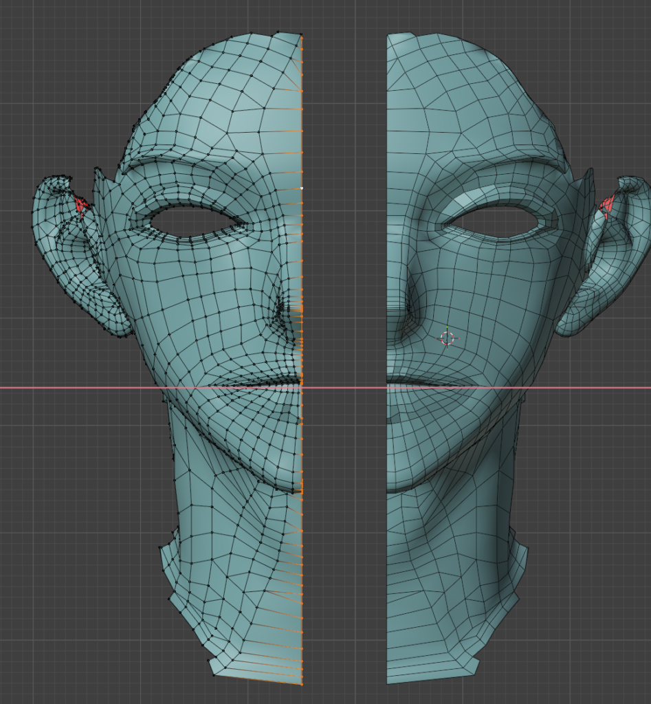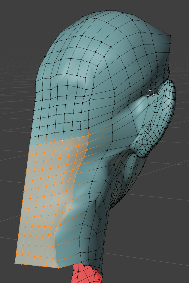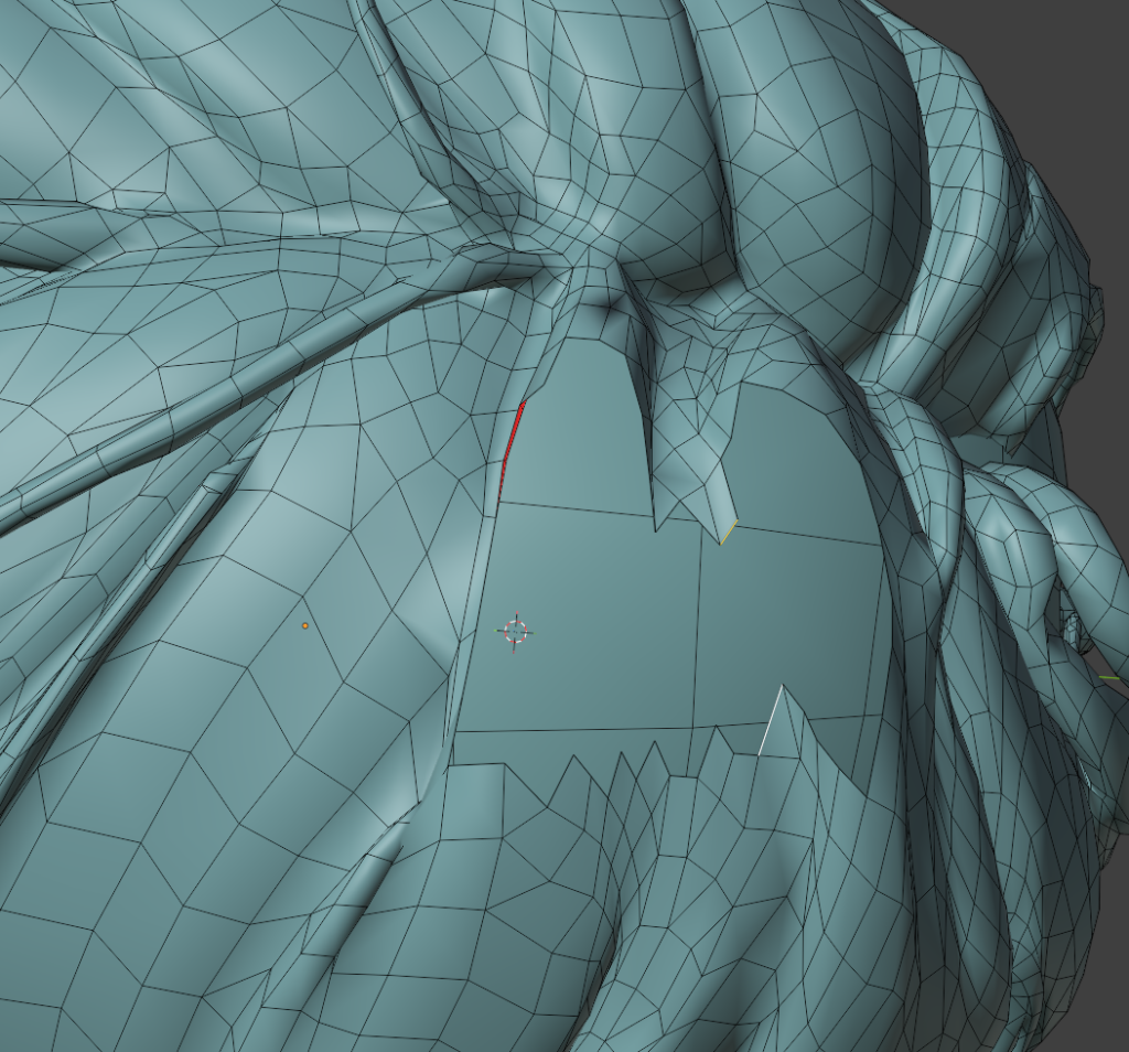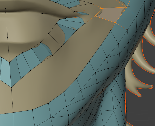 一度作ってしまえば、次回は口元の部分のメッシュだけコピーして、リトポロジーしたいローポリモデルに貼り付け、適当に繋げるとかなりの時短になります。