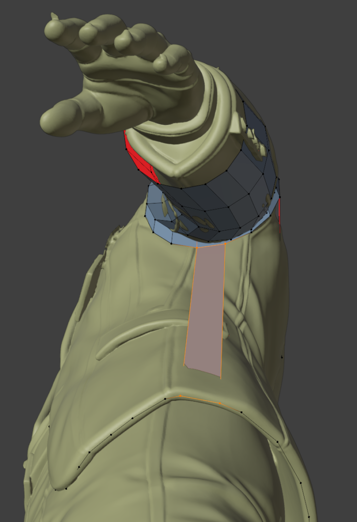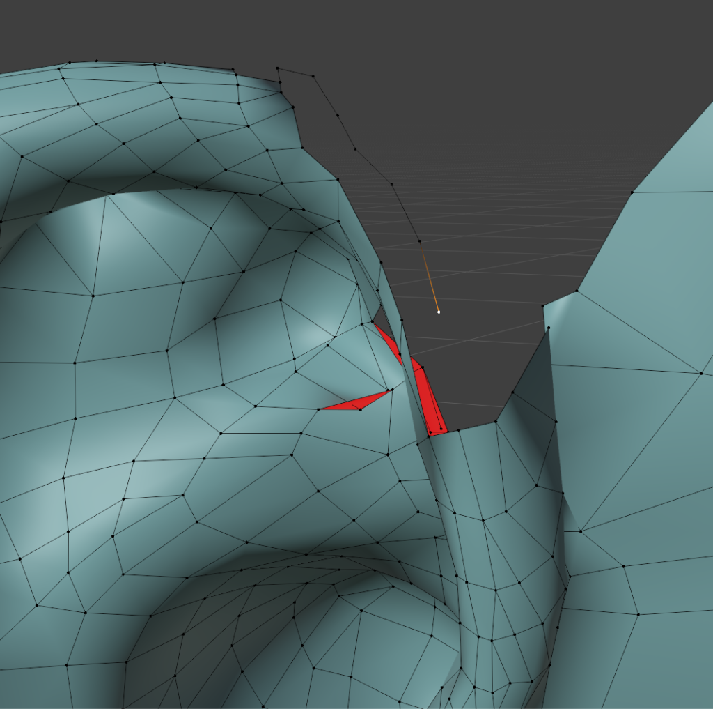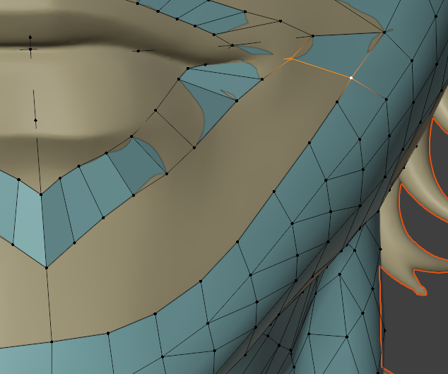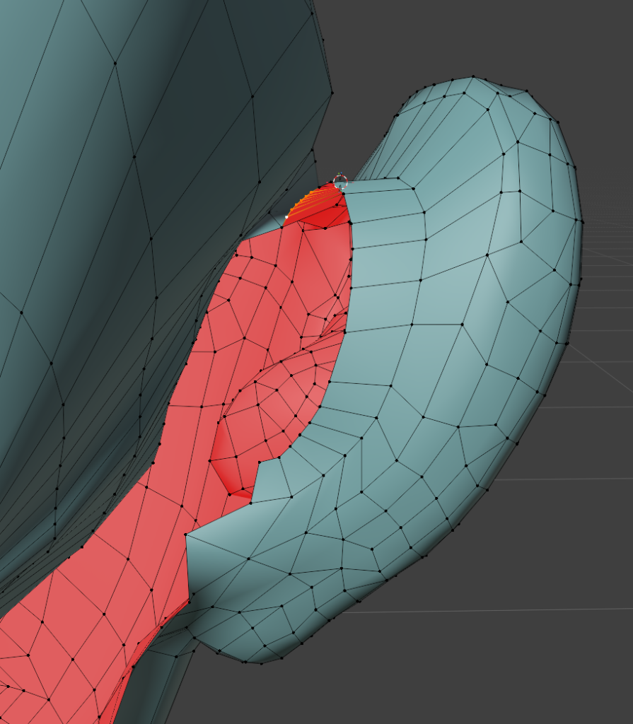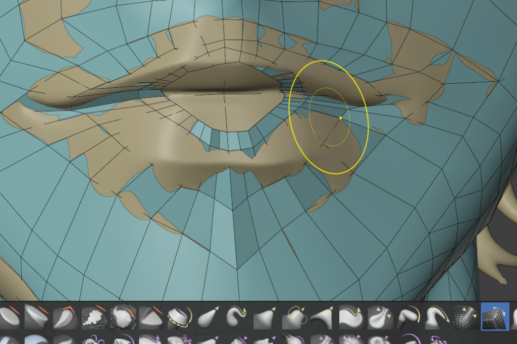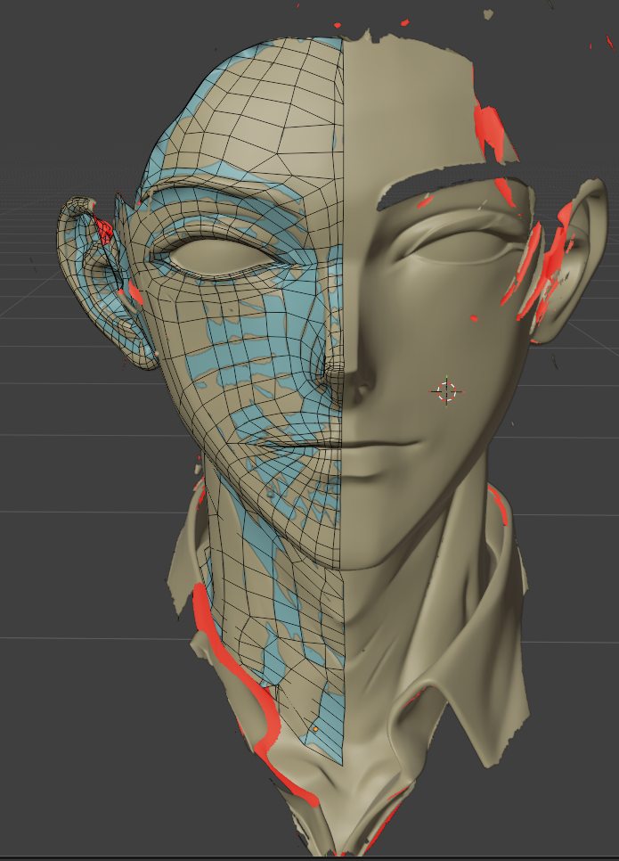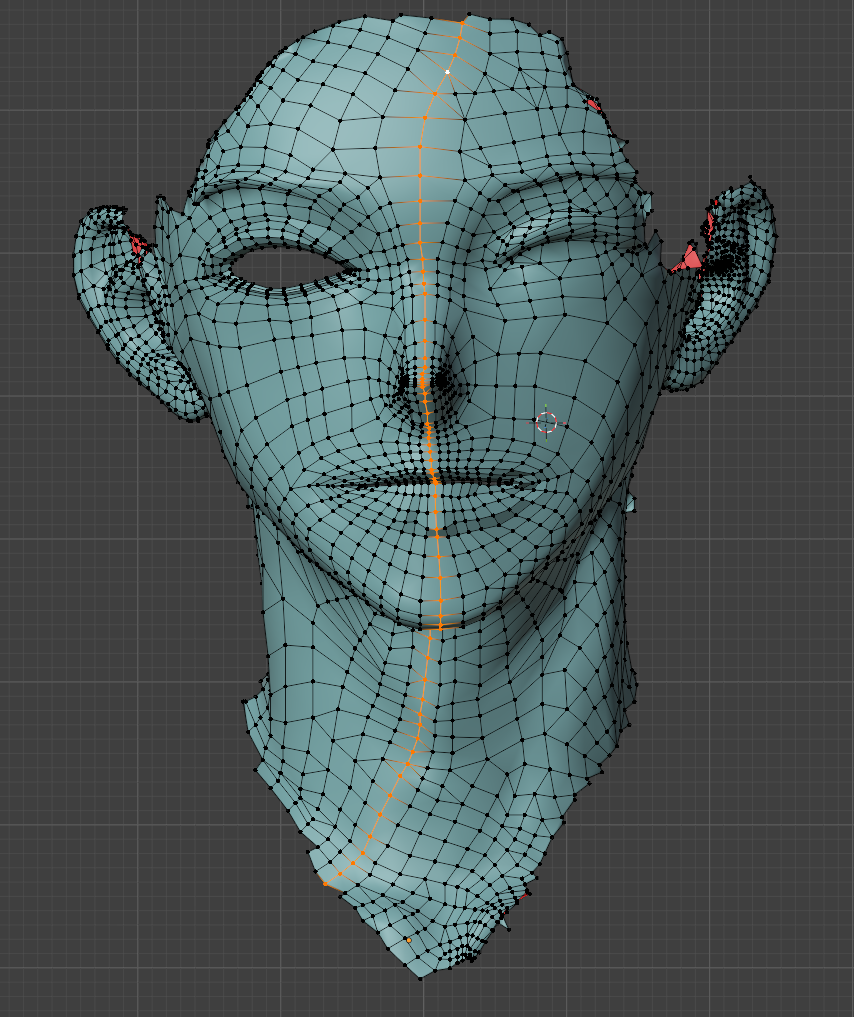一度作ってしまえば、次回は口元の部分のメッシュだけコピーして、リトポロジーしたいローポリモデルに貼り付け、適当に繋げるとかなりの時短になります。