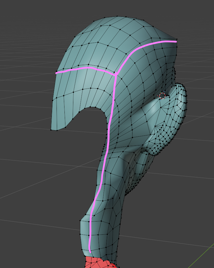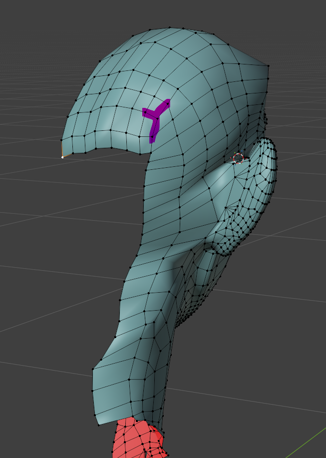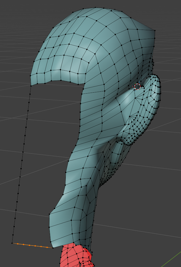 頭のほうも頂点スナップを有効にし、耳のほうに近づけていくと良いでしょう。