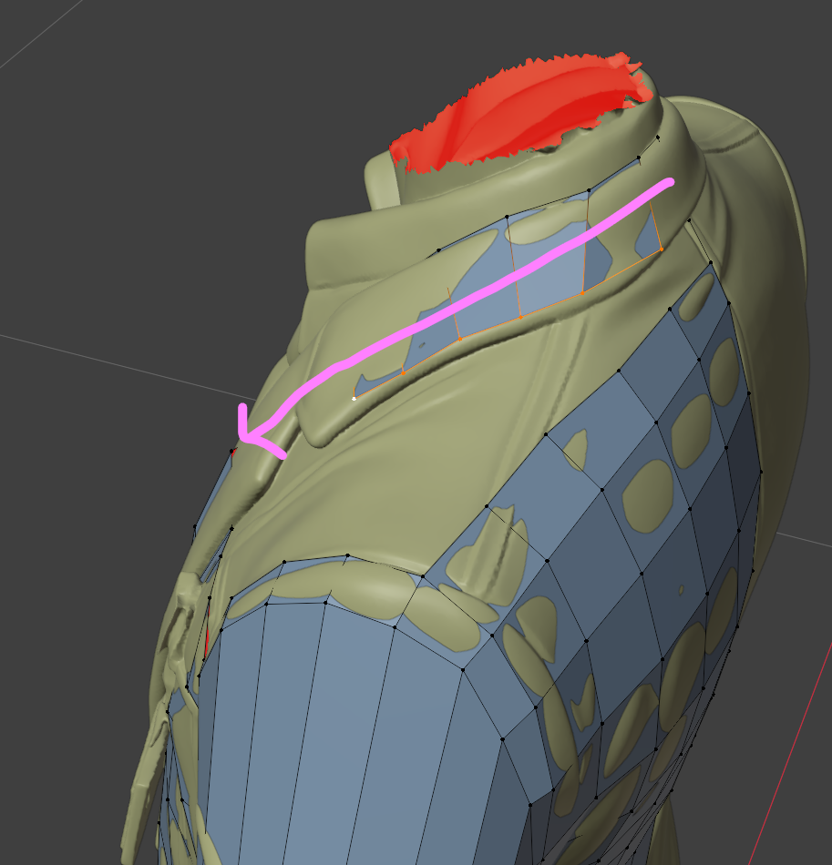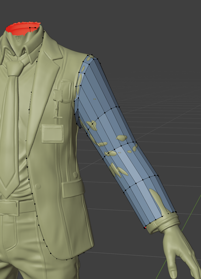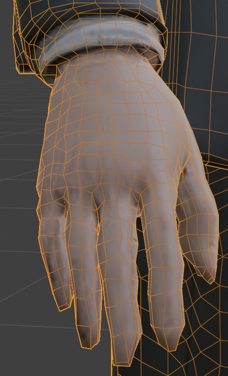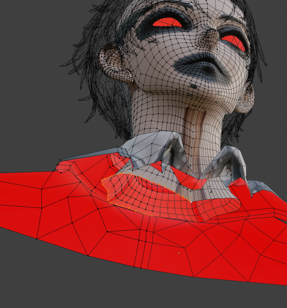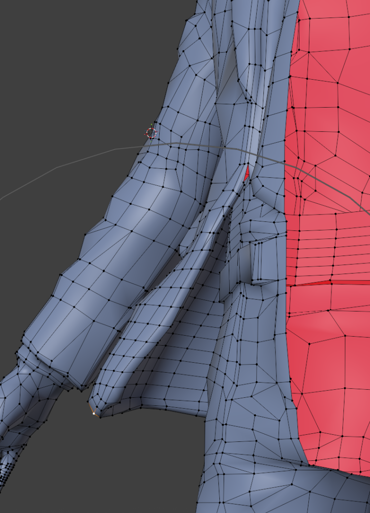 スーツの裾、襟の部分は押し出しで作ることでトポロジーの流れを画像のような理想的な感じにできます。