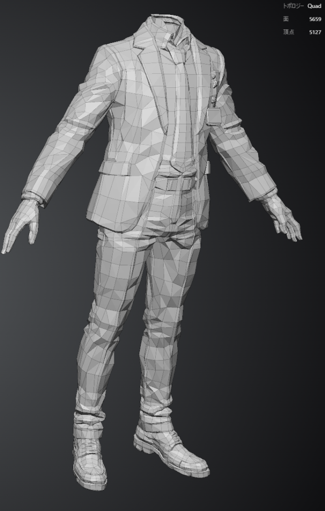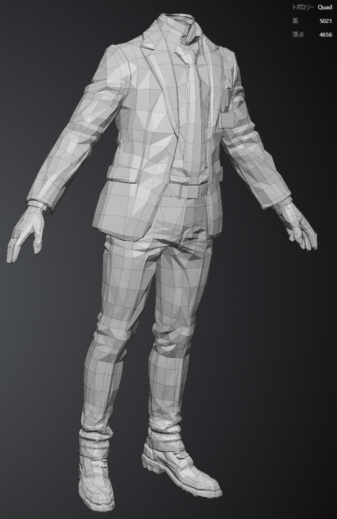 Tripoでリメッシュされたモデルを使おうかと思ったのですが、うんちトポロジーのため作り直さないとどうにもいけません。主人公ではないモブならそのまま使っていたのですが…