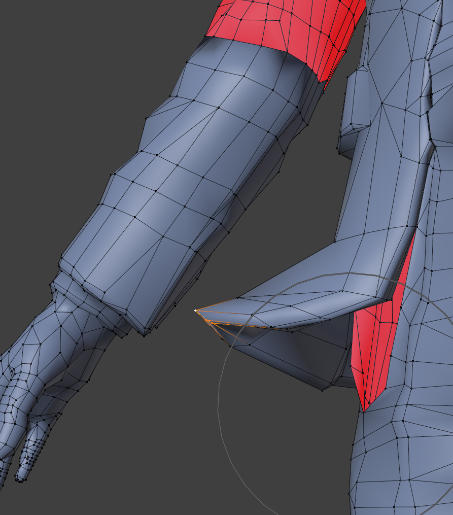 三角面、Nゴン(五角形以上の面)が作られないようにナイフを入れて、ポケットなどを押し出します。難しければ適当でもいいです。