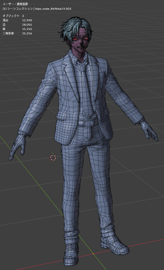 前回までで、3Dモデルを髪・顔・体(スーツ)の部分にそれぞれ分割しました。
